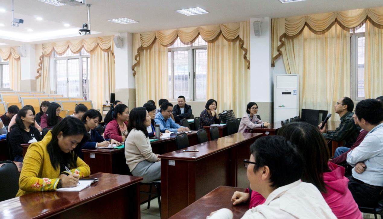 2018年11月2日上午,惠州学院文学与传媒学院省培项目跟岗学习导师团队第一指导小组(王立祥教授、史素昭教授、陈金花副教授、雪弟副教授、崔绍怀副教授)在王立祥副院长带领下,来到惠州市第一中学初中部(2018年广东省中小学教师省级研修培训跨年度递进式培训项目暨乡村教师置换培训班<初中语文>跟岗实践基地),看望、指导正在跟岗学习的省培学员,并进行了座谈与交流。