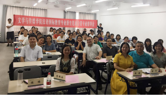 10月12日下午,“汉语国际教育专业新生见面会暨专业指导会”在旭日楼401课室举行。文学与传媒学院颜敏副院长、党总支黄伟副书记、专任老师曹国安、陈楠、徐世民、陈送文、专业外教、教务员黎静、辅导员彭嫚丽、班主任张继荣以及19级汉语国际教育专业38名新生参加了会议。会议由创新与应用教学中心主任闫占士主持。