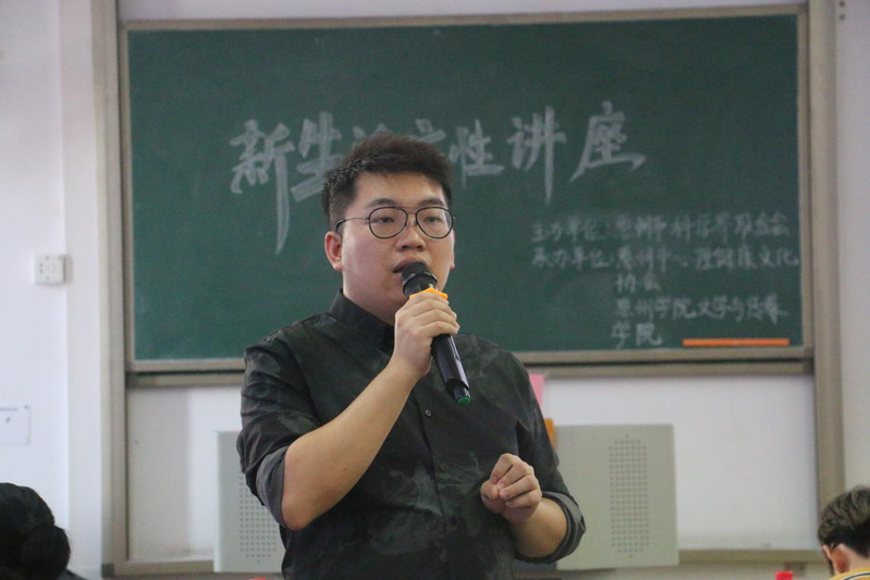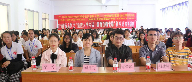 2019年11月17日下午,惠州市心理健康文化协会副会长许肇泽老师应邀在旭日楼205课室作题为“适应大学生活、调节自我情绪”新生适应性讲座。2019级学生代表、辅导员刘日飞老师、刘建辉老师、学生会副主席李文、团总支副书记詹泽喜、书记处副书记余俊宇参加讲座。