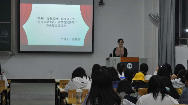 2019年11月17日晚,惠州学院教育科学学院何资桥副院长应邀在旭日楼118课室作了题为“大学生身心健康与情绪管理”的新生适应性讲座。2019级学生代表、黄伟副书记、辅导员彭嫚丽老师、学生会副主席陈诗婷、团总支副书记詹泽喜参加讲座。
