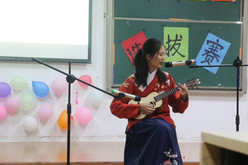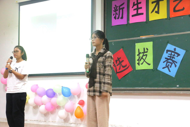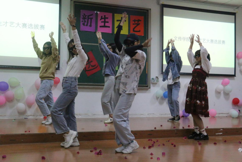 团总支办公室成员演唱歌曲《告白气球》、文娱部的歌舞串烧《快乐你懂的》,均用抒情、动人的歌声深深打动了在场观众。