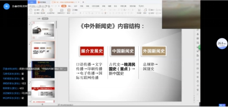 据悉,许鑫教授本次网络公开课主讲的内容为中外新闻史中的中国古代的报刊和广告部分,他分别从中国古代报刊的产生及演变、古代报刊与近代报刊的差异、中国古代广告的产生与发展三个方面展开教学。网络公开课上,许鑫教授用大量的史实、生动的案例并结合自己的研究成果,娓娓道来,深入浅出,精彩纷呈,课堂气氛非常活跃。