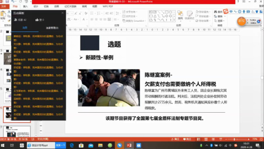 在网络讲授中,李耿晖老师通过PPT课件、相关内容的视频案例解读、制作方式分解等方式,结合自身工作经验以及鲜活生动的例子分析,与学生的互动中,将评论类专题节目中,导演应该具备的基本素质、制作技巧、全流程把控等方面的内容进行了讲述。