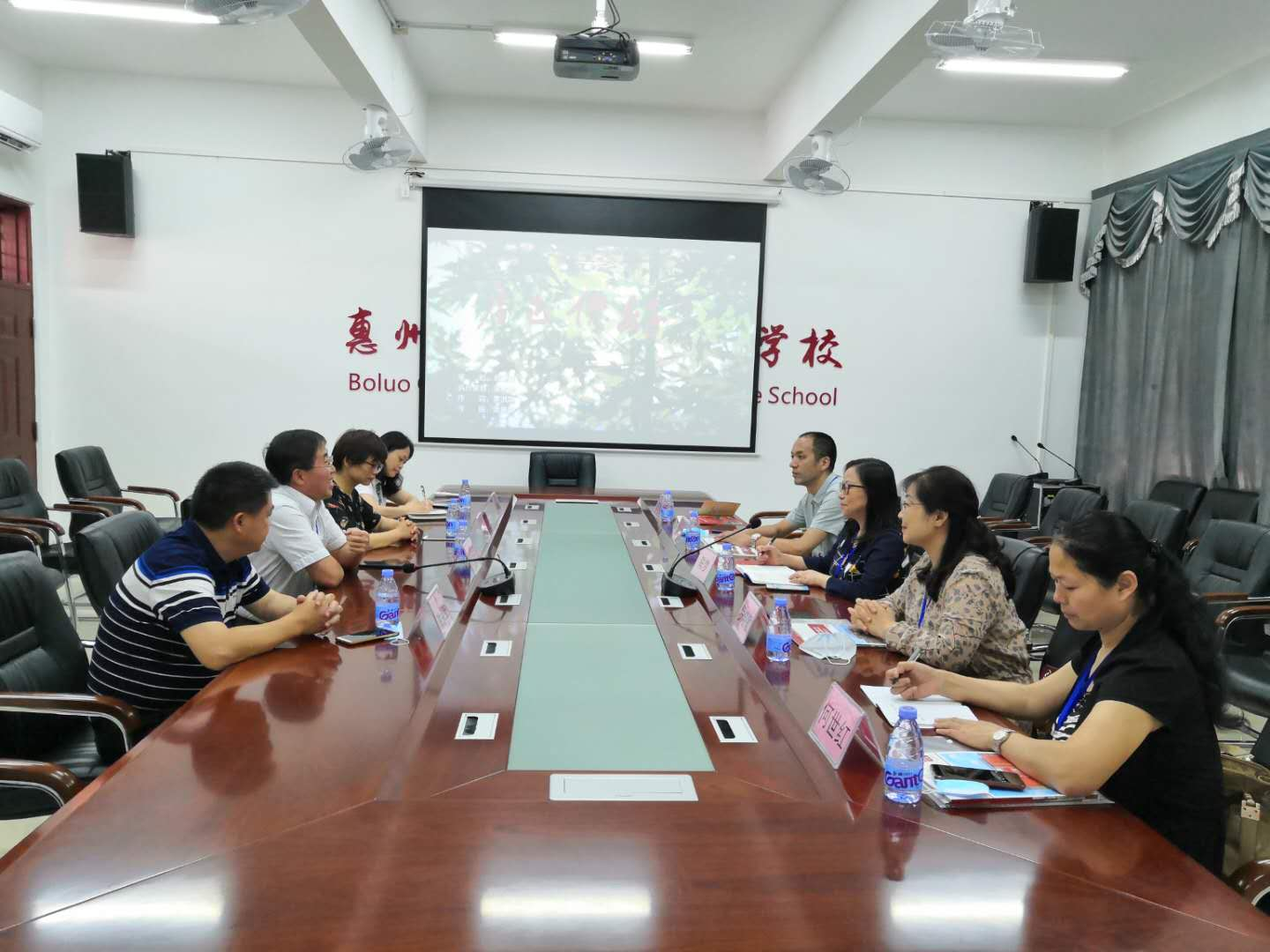 2020年6月5日上午,我校教务处罗晓敏副处长与何世红老师,文学与传媒学院陈梦院长、申东城副院长和黄吉群老师一行,应邀到惠州一中博罗启正学校走访交流,洽谈大学生教育教学实习实践基地等合作办学事宜。启正学校校长刘国前、副校长(初中部)张小英、副校长陈永军(小学部)、人事处朱瑞蓉主任等参加了接待洽谈。