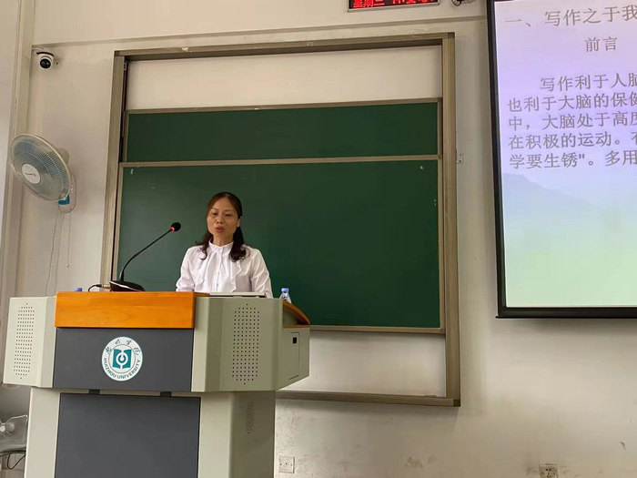 2021年4月28日下午第5-6节,南山学校梁平霞老师在惠州学院旭日楼219教室进行《基础写作2》的嵌入式教学活动,文学与传媒学院2020级中文1班、4班全体学生参与,任课老师徐威老师主持。