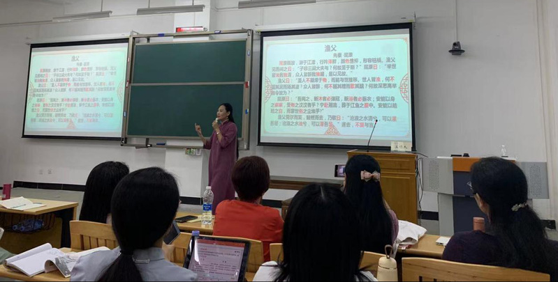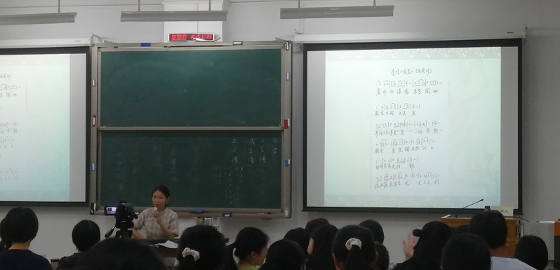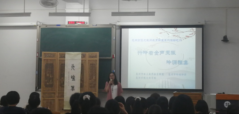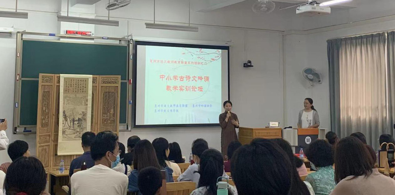 下午2点30分,胡谭珠老师带来了精彩的吟诵教学经验分享,随后又进行实践教学,现场教授吟诵技巧。