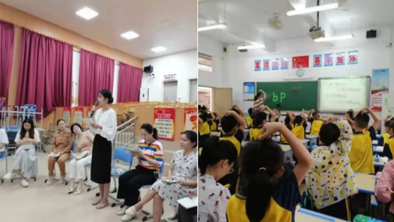 惠南学校精心安排,见面会刚结束立即,文传学院在小学部实习的十位实习生在双方指导老师带领下,到一年级观摩了一堂精彩的语文公开课,实习生们很快就感受到了小学上课的不一样氛围,课堂活动丰富多彩,气氛十分活跃,这都得益于经验丰富的老师在备课、磨课方面下了很多功夫,充分体现出“一分耕耘一分收获”的含义。下课后实习生们也有幸参与了评课,与老师们展开了进一步交流,面对难得的机会,实习生们踊跃发言、积极探索,老师们答疑解惑、耐心指导,师生们在一片欢愉的气氛中结束了在惠南学校的第一堂课。