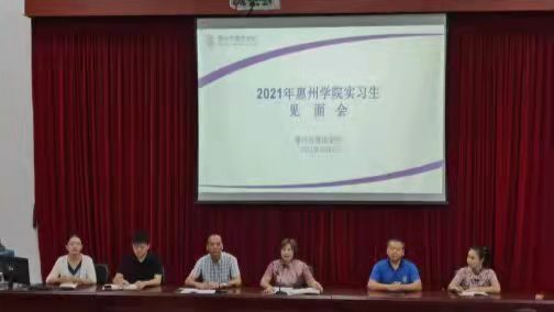 集合完毕后,在惠南学校道德讲堂阶梯教室开展了2021年惠州学院实习生见面会。出席本次见面会的领导老师有:惠南学校工会主席冯素娟老师、惠州学院文学与传媒学院副院长申东城教授,及惠州学院各二级学院指导老师代表魏江华、刘艺红、王慧泽、刘敏、莫秋慧、刘卫东、赵芳、李昌勇等。