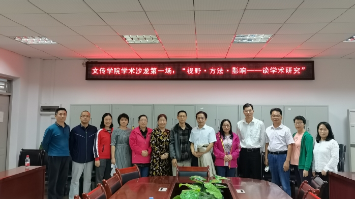 10月30日下午,文学与传媒学院在学院会议室举行本学期第一场学术沙龙,伍世昭教授以“视野·方法·影响——谈学术研究”为题作了学术报告,陈梦院长和部分老师参与了沙龙,本次学术沙龙由许鑫副院长主持。