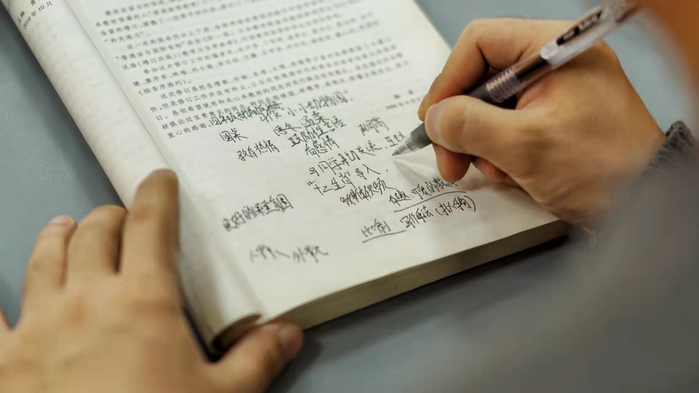 课堂中,19汉1班的同学们受到严老师课堂的感染,虚心向严老师学习。为了更好掌握课堂中的“精华”,同学们在远程见习课中认真做笔记以汲取严老师的教学方法、思路与理念,并对此进行认真仔细地梳理与分析。