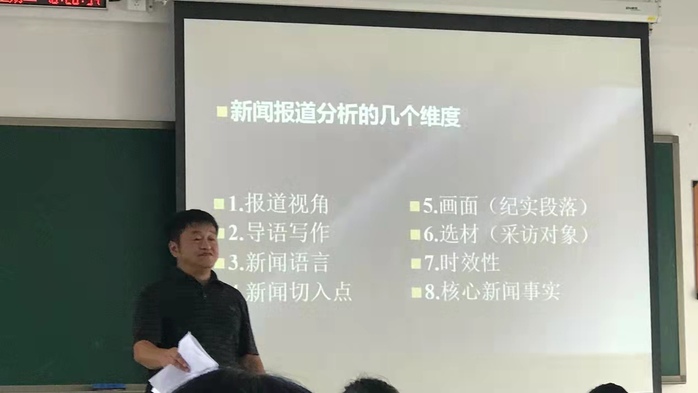2021年9月14日,文传学院广播电视学专业举行新学期第一场教学公开课活动,广电教研室王立祥教授为广电2020级1班同学主讲《电视新闻编辑》课程。我院广播电视学专业教师张波老师、樊昌志老师、李耿辉老师、白多老师、杨卉旬老师,以及中文系曹国安老师参加听课交流活动。