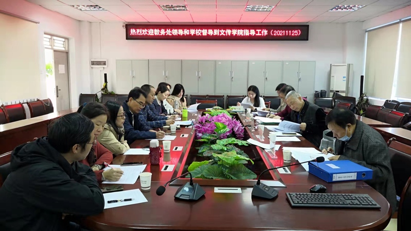 2021年11月24日上午,学校教务处罗浩、杨妃及学校督导组成晓军教授、赖悦教授、陈汉亭教授一行,对我院开展期中教学督导检查。文传学院教学督导组对前来检查的学校教学督导表示热烈的欢迎,文传学院副院长、院督导组长申东城教授代表学院就期中教学检查情况进行了汇报。