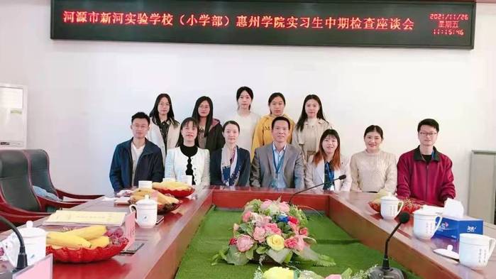 2021年11月26日,文学与传媒学院中文系卜凌云和欧治华教授、李巍博士一行3人到河源中学实验学校开展实习生中期检查工作。该校林国胜副校长、胡燕芬副校长、李兵兵主任、王小斌副主任陪同接待。在座谈会上,我院老师了解了实习生们的工作和生活情况。实习学校教研室李兵兵主任从课堂常规、备课上课、活动育人、食宿生活等方面作了详细汇报,全面展示了实习生在校跟岗学习的面貌。我院实习生在跟岗期间积极主动、踏实肯干,赢得了指导老师及各年级教师的一致认可。实习生们也汇报了自己在新河实小的学习和收获。大家畅所欲言,对该校的课堂教学、校园活动、文化氛围等做了详细的介绍。我院教师对学校给予实习生提供学习和成长的平台表示感谢,并对实习生提出了期待,希望在接下来的时间继续发扬好学上进的精神品质,明确目标,提升课堂教学技能,积累班主任管理经验,为今后走上教师岗位打下扎实基础。