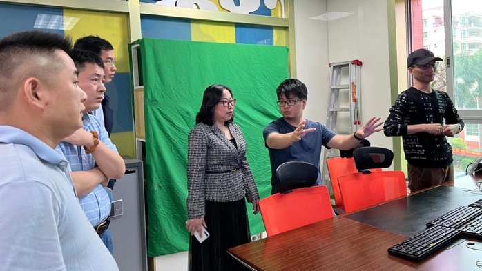 随后,我院一行来到捷创电商公司,受到捷创电商黄继永、黄昭昭等人的热情接待,在其带领下,参观了捷创电商直播室、电商培训室。传陈梦院长介绍了我院新媒体与文化创意产业学院的建设设想,表达了加快推进校企共建的想法。大家围绕产业学院的建设工作,展开了深入交流讨论。