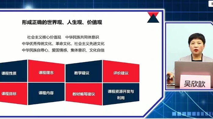 吴欣歆教授指出,新修订的课程标准对比之前主要有以下五个方面的变化,强化了课程育人导向、优化了课程内容结构、研制了学业质量标准、增强了指导性、加强了学段衔接等,她围绕这五个方面的变化一一详细讲解。