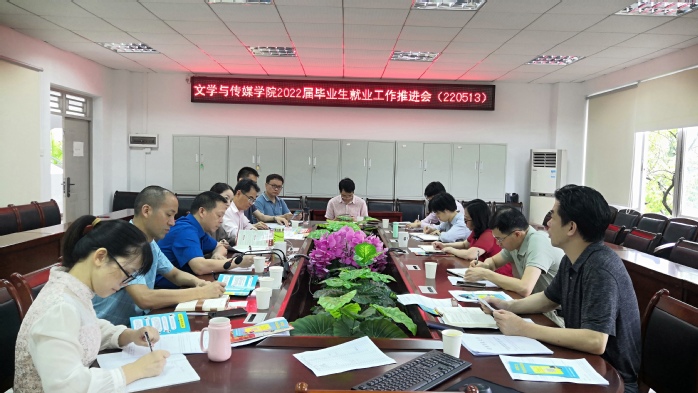 5月13日,文学与传媒学院召开了2022届毕业生就业推进会,学院全体党政班子、班主任、辅导员参加会议。