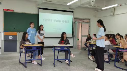 为激发同学们的学习兴趣,加深对经典文本的理解,2022年6月16日上午8点,21汉2班全体同学在旭日楼412课室开展《雷雨》话剧表演活动,《中国现代文学》任课老师冯爱琳副教授出席指导。