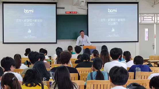 首先,林骏腾简要介绍了金彩新媒体公司的基本情况和主营业务,并对其面向大学生群体开展的新媒体实训项目进行讲解。随后,电商达人王文聪给同学们分享了新媒体短视频平台的运营机制和经营模式,为同学们讲述了他在从事电商直播和短视频平台策划与运营中的实战经验,并就在直播中塑造核心记忆点这一话题与同学们展开了讨论。