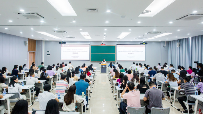 欧治华教授是此次培训班的班主任,对本次培训课程设置和培训任务总体布置进行了详细解读。她介绍说,本次培训方案是在学院高度重视下、经过数月调研论证和反复修改而成,紧密围绕师德修养、心理健康教育、学科专业知识、课堂教学技能、教研教改等方面开设了13门特色课程,邀请了西南大学荣维东教授、四川师范大学李华平教授、湖南科技大学黎志华教授、全国模范教师广东省特级教师郑旺吉老师、广东省教育研究院中学语文教研员冯善亮老师、深圳市保安区教育科学研究院初中语文教研员倪岗老师等语文名师和知名专家来讲学,采取线下集中授课、专家引领、小组研修、主题沙龙等形式,力求做到内容充实、形式活跃,希望学员通过此次培训真正做到示范引领、补齐短板、促进发展、实现强师目标。