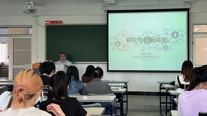 11月9日下午,文学与传媒学院组织了广播电视学专业“业界精英进课堂”活动,惠州报社超网新媒体公司董事长陈彬受邀为20级广播电视学专业同学们讲授“媒体融合的创新与实践”主题讲座。