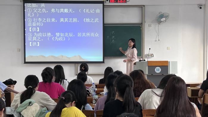 陈丽老师从已学习的文选例证出发,引导学生理解古今字的概念、来源、类别等问题,在讲解过程中注意与课本文选的结合、与中学语文教材结合,深入地解释了古今字及相关问题。教学过程中注重启发学生复习旧问题,思考新问题,课堂气氛融洽,教学效果较好。