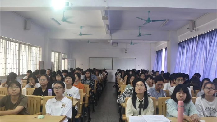 接着,梁老师从读其诗、知其人、感其思几方面来跟大家分享了王阳明的生平事迹、人格精神和心学思想。其中,重点通过品读王阳明的诗歌,让同学们感受了王阳明乐观豁达的精神及其心学的核心思想良知说,并结合当下的一些社会现象阐明致良知的重要性。