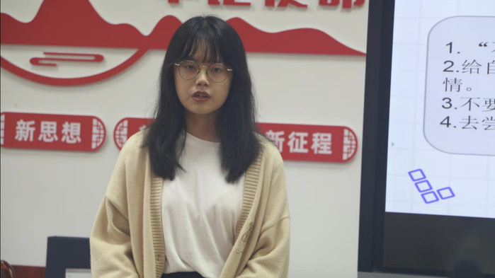 辅导员王萍老师对2022年奖助学金情况进行了通报。紧接着,优秀学生代表韦晓微进行了经验分享。首先在学习方面,韦晓微同学指出学习制定好计划,多看书的重要性。同时,她强调在思考时要多和同学老师们讨论,要积极参与实践,敢问敢为,勇于尝试。在资源分享方面,韦晓微同学给大家介绍了许多获取电子资源和学校资源的方法,并且让同学们把握好当下时期学习的“利器”;最后从自身的经历跟大家分享了她在不断的尝试中逐渐跳出自卑的历程,鼓励各位受助学生要勇于尝试,跳出自卑,最终她鼓励大家通过做志愿等方式为社会做贡献,同时要替社会上其他有困难的人发声,为他们提供帮助。
