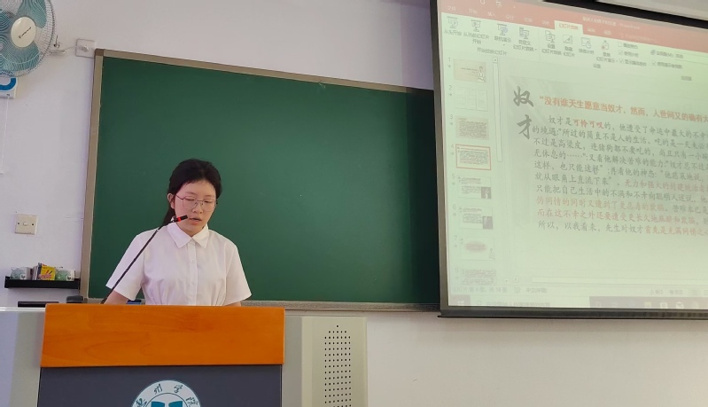 明秋璇小组分享的《失掉的好地狱》着重揭示文章的主旨,即文章用隐喻的手法暗示了当时社会生活中的人物和事物,隐晦地传达出对当时政局的不满,撕下了当时北洋军阀统治以及历史上一切反动统治阶级的虚伪丑恶面具,发出了反狱的不同凡响的一吼;朱晓惠、梁皓铖小组分享的《死火》分析了文章运用的“生命”与“死亡”的双向视角,进而理解文章的思想情感,即文章表现了作者鲁迅关心、爱惜革命者的高尚情怀,以及与帝国主义和军阀势力决绝斗争的态度和为革命献身的无私精神。