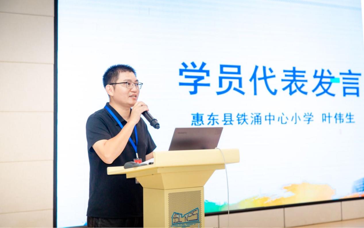 学员代表、惠东县铁涌中心小学叶伟生在发言中郑重承诺:以“归零”心态完成每日“四个一”微行动——精读一篇教改文献、精听一节示范课、精研一个教学痛点、精写一篇反思日志;返校两周内再完成“三个一”成果辐射——一份科组汇报、一节公开课、一篇推文,让“松山湖经验”第一时间转化为“本校实践”,形成“蝴蝶效应”。