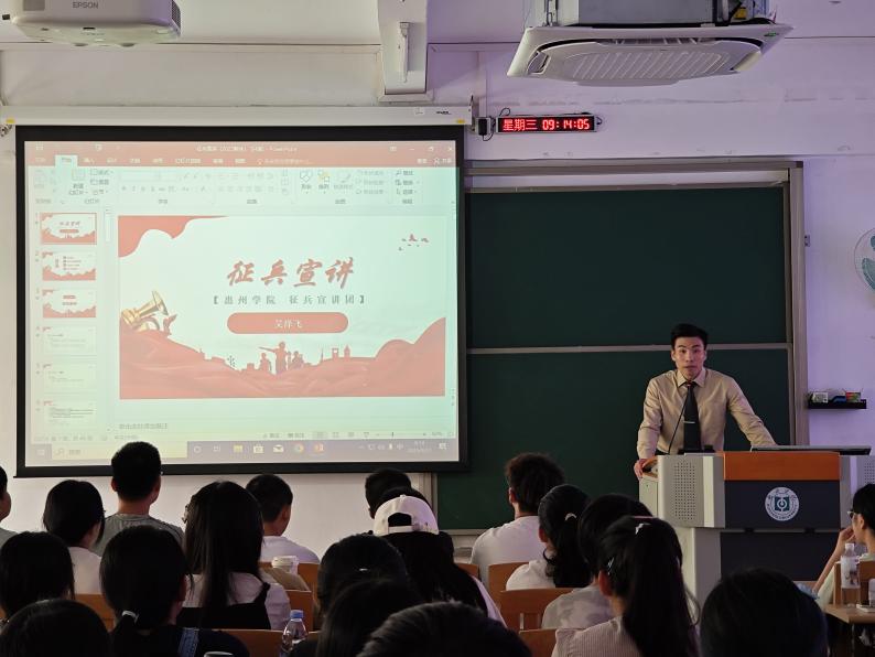 随后,进入征兵政策环节,校征兵宣讲团团长的同学基于自身军旅经历,结合最新政策,全面而生动地为同学们解读了大学生入伍的条件、优惠政策、发展路径及报名流程等关键信息,点燃了同学们“携笔从戎、守护家国”的青春热情。