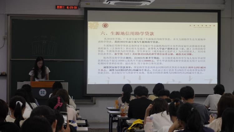 最后,资助政策宣讲大使为同学们逐一介绍奖学金、助学金、助学贷款、勤工助学等资助项目,明确申请条件与流程,重申“不让任何一位同学因家庭经济困难而失学”的校园承诺,为新生安心求学筑牢保障。