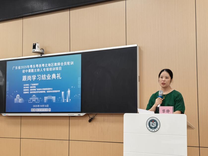 2025年10月16日,广东省2025年粤东粤西粤北地区教师全员轮训——惠州学院初中课题主持人专项培训班赴东莞市长安实验中学实践基地跟岗学习圆满闭幕。在为期4天的跟岗培训中,来自惠东、博罗、龙门三县的50名骨干教师齐聚一堂,深入交流教研经验,系统提升课题主持能力,为推动区域教育科研水平注入新动能。