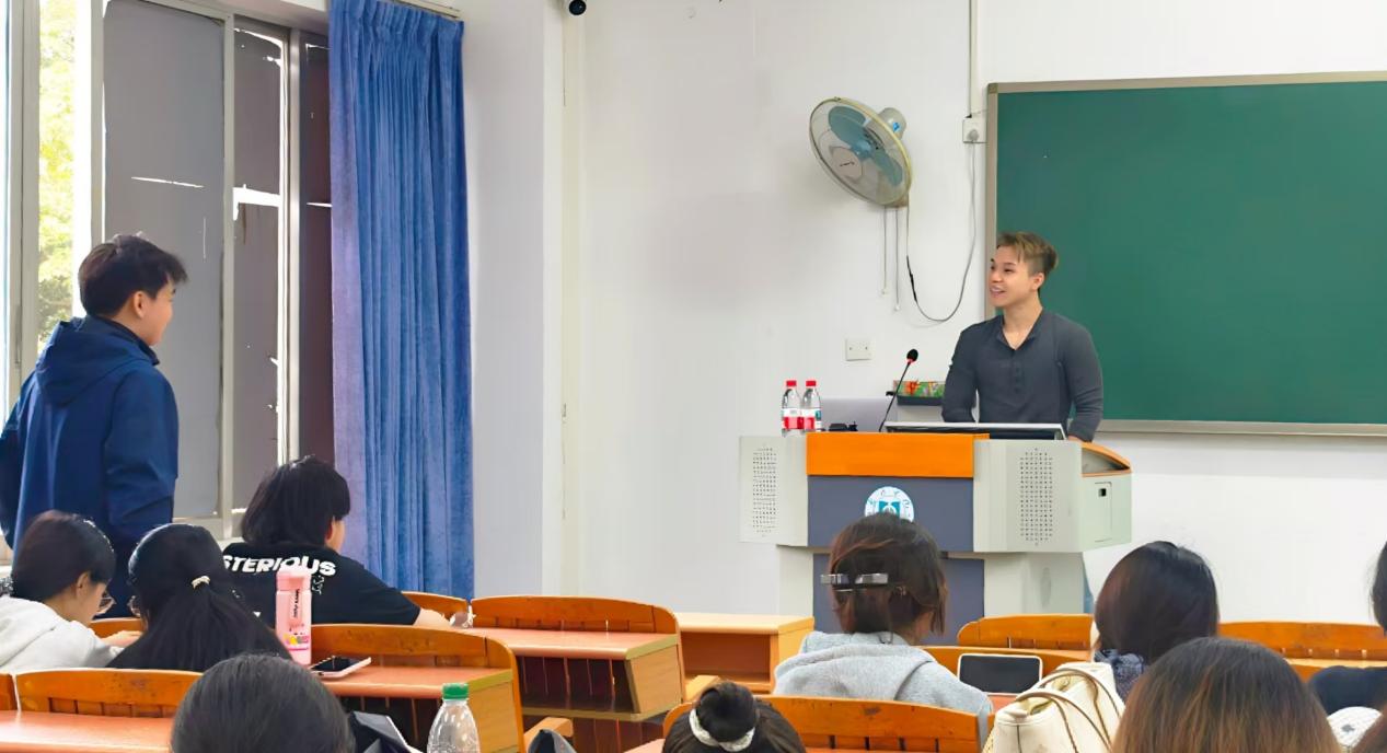 郑杰结合惠州本地多个颇具影响力的短视频账号案例,剖析内容定位、人设塑造与传播策略,启发学生思索如何挖掘具有本土特色的人物与故事。在互动环节,同学们积极踊跃地提问,围绕方言传播效果、政府相关扶持政策以及企业承接的地方项目等话题展开了热烈交流。
