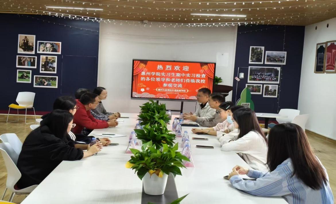 在第一站大亚湾区外语实验学校,副校长杨明、明峰热情接待我院走访团队。座谈中,杨明对我院实习学生的表现给予高度认可,详细介绍了学校为实习生提供的教学实践平台与指导支持,并结合教学管理经验为实习生未来职业发展规划提出宝贵建议。明峰聚焦实战技能提升强调,建议实习生要主动对接带教老师,从备课打磨、课堂把控、互动引导等核心环节虚心请教,把理论转化为实操能力。