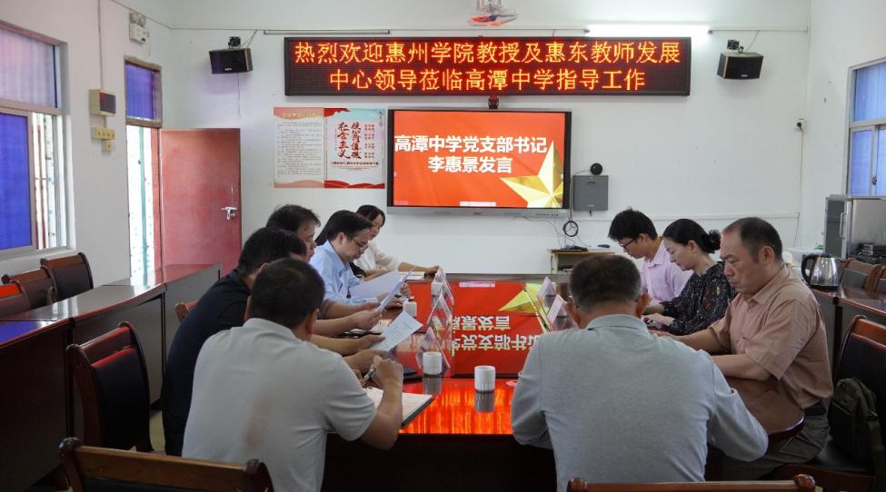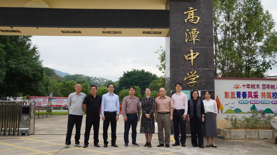 11月6日下午,为落实《惠州学院纵向帮扶惠州市欠发达地区“三所学校”和县中质量提升工作实施方案》要求,推进惠州学院纵向帮扶惠东县基础教育质量提升项目,文学与传媒学院副院长卜凌云与计算机科学与工程学院副教授王健海、学院辅导员孙嘉创一行,赴惠东县高潭中学视察纵向帮扶工作。惠东县教师发展中心主任何水等共同参与。