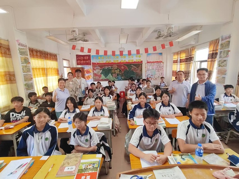 2025年11月5日,惠州学院文学与传媒学院美育浸润团队再度走进龙门麻榨中学,开展“以声传情”朗诵美育活动。教授张波、副教授冯爱琳、博士代廷杰带领2023级语文教师卓越班学生代表,为龙门麻榨中学的同学们带来一场沉浸式的朗诵体验。
