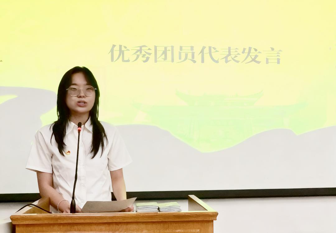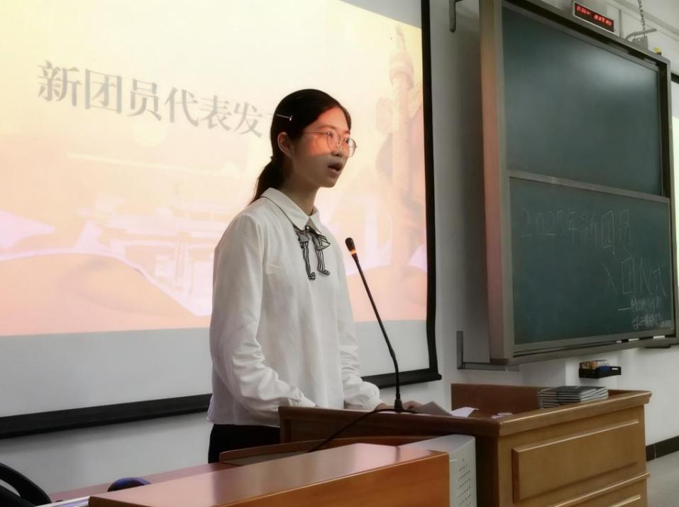 第五项议程,新团员代表缪睿发言。在发言中,她表达了加入共青团的光荣与自豪,并代表所有新团员向团组织和老师们致以感谢。她表示,佩戴团徽不仅是一份荣誉,更意味着责任与使命。她承诺,全体新团员将坚定理想信念,勤奋学习,积极实践,甘于奉献,团结协作,努力担当时代重任,以实际行动践行“青年强,则国强”的誓言,为实现中华民族伟大复兴贡献青春力量。