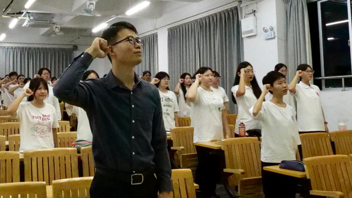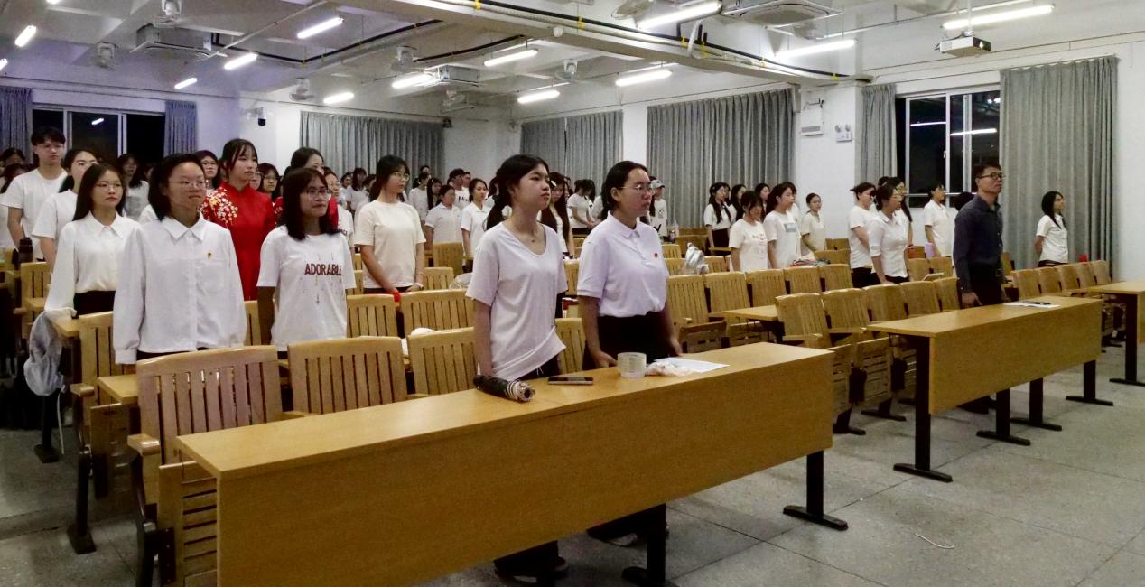 为加强青年思想引领,壮大团组织力量,激励广大青年坚定理想信念,2025年11月8日晚上,我院团委在旭日楼106课室举行新团员入团仪式,56名预备团员在学院团委书记孙嘉创、各班团支书及优秀团员代表的共同见证下,光荣加入中国共产主义青年团。仪式共分为八项议程。