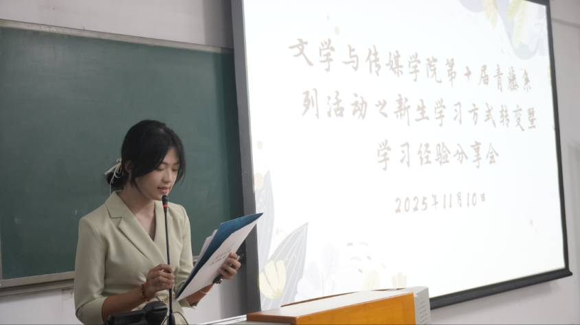 为助力2025级新生顺利完成从高中到大学学习模式的过渡,明晰学业发展方向,加深专业认知理解,11月10日晚,我院在旭日楼419教室成功举办第十届青藤系列活动之“新生学习方式转变暨学习经验分享会”,本场活动面向2025级汉语言文学4班与5班的92名新生,由石依琦同学主持。