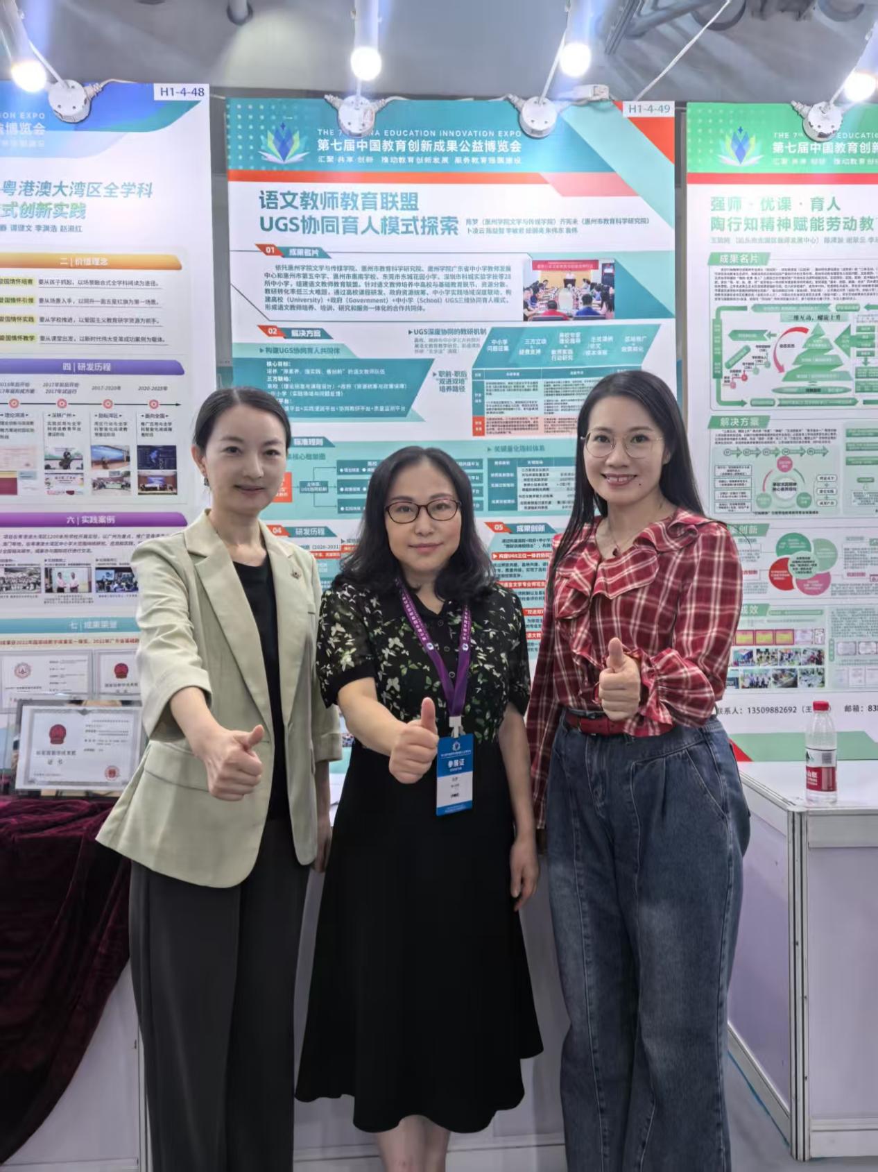 11月15日至17日,我院院长陈梦带队赴珠海参加了第七届中国创新成果公益博览会。该展会由北京师范大学主办,在珠海国际会展中心举办,以“汇聚・共享・创新——推动教育创新发展,服务教育强国建设”为主题,现场参展近10万人次,线上观看量近300万人次。我院参展的教学成果是“语文教师教育联盟UGS协同育人模式探索”,由陈梦和惠州市教育研究院副院长齐宪未牵头,联合惠州学院继续教育学院、惠州市第五中学、惠州市惠南学校和东莞市东城花园小学,多方合作共同研发而来。该成果在2024年被评为惠州市教学成果奖的特等奖。