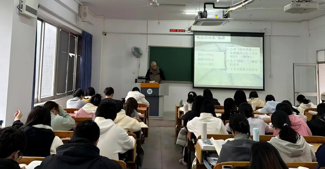 11月19日上午,我学院中文系龚云普老师在旭日教学大楼416教室为2024级汉语言文学一班同学带来一场《中国当代文学》公开课教学展示,主题为“1980-1990年代诗歌之‘崛起者’诗歌选讲”。校、院督导组及我院多位专业教师到场观摩。