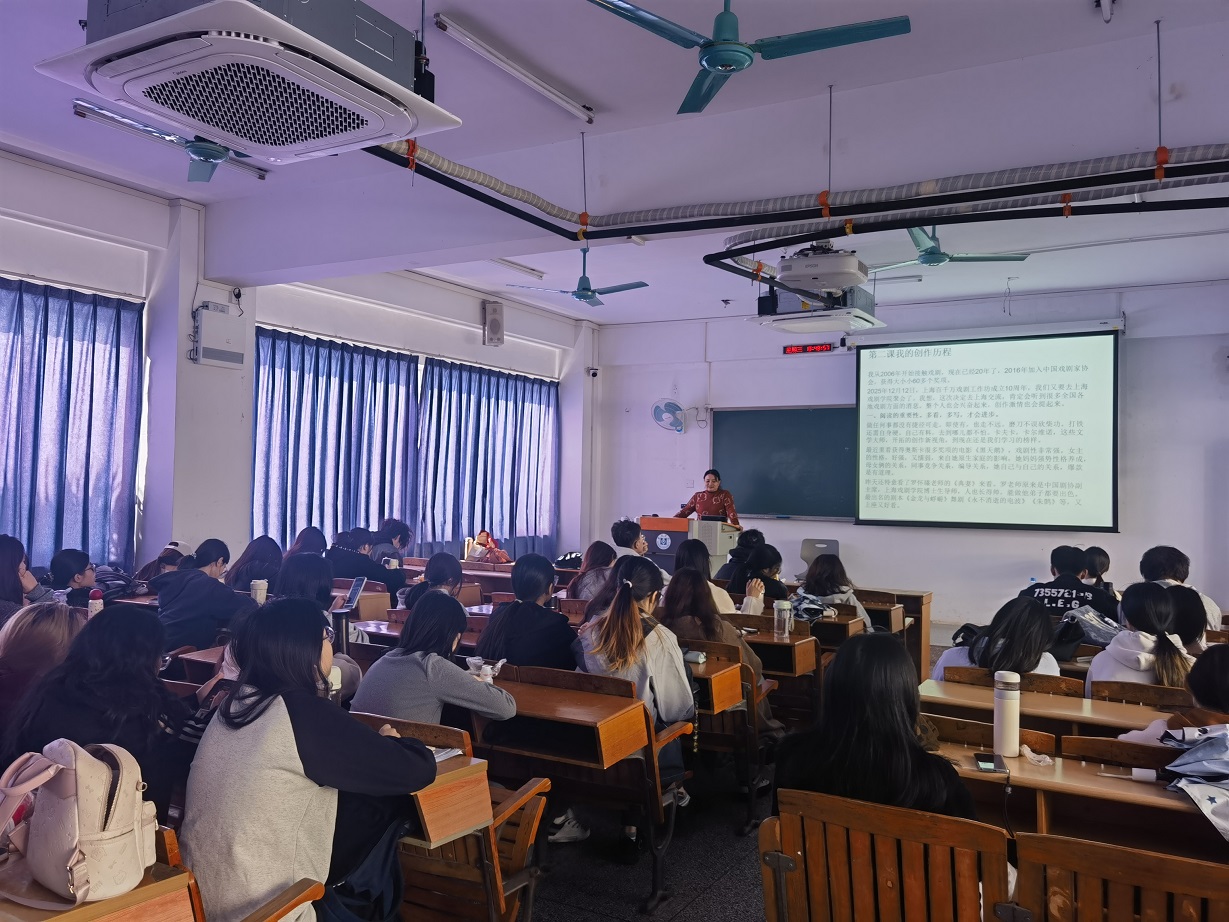 作为一位经验丰富的编剧,李小惠将其在上海戏剧学院交流学习的宝贵心得与自身创作实践相结合,为同学们打开了一扇通往戏剧与内容创作的大门。课上,她与同学们分享了国内顶尖艺术学府的剧本创作理念以及“一句话编剧法”,组织学生进行了“情景表演”,让同学们切身感受戏剧的张力与人物塑造的奥秘,实现从理论到实践的初步跨越。