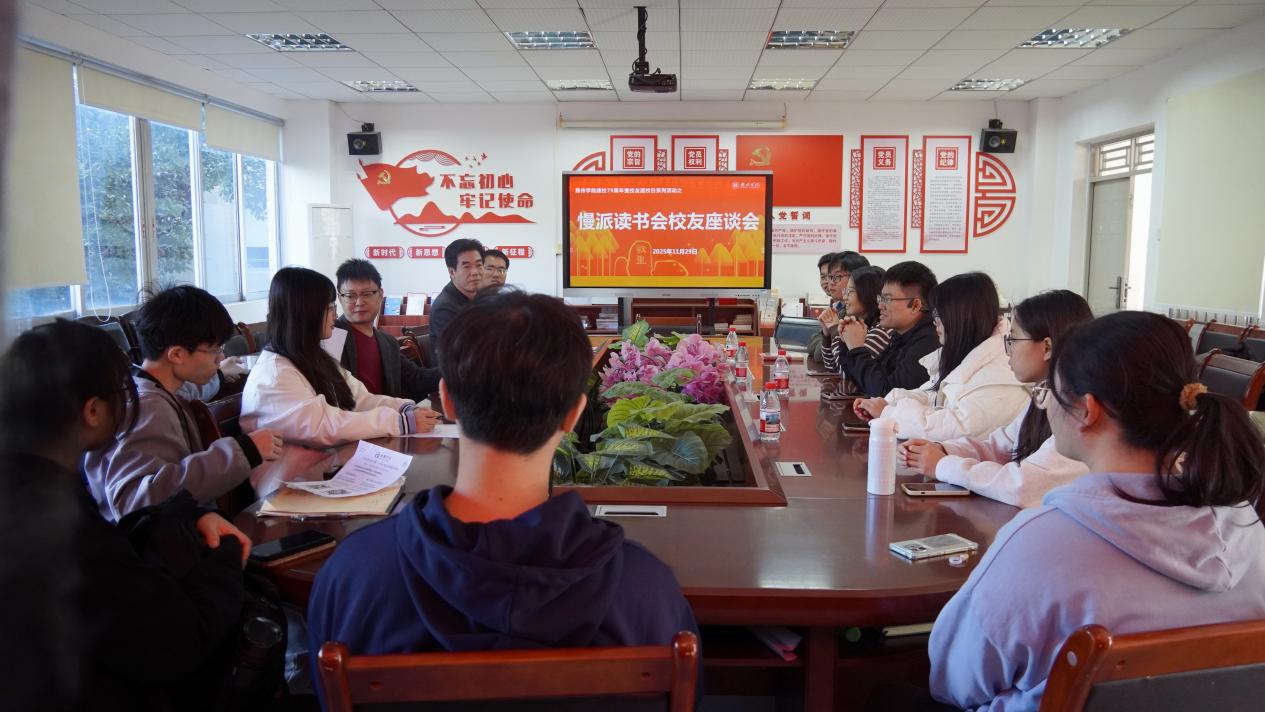徐威向几位优秀校友表示了欢迎,并讲述了慢派读书会创立背后的故事。他提到,读书会从最初寂寂无名的社团起步,凭借师生对文学的热爱与坚守,逐步发展为校内颇具影响力的文学交流平台,这一成长离不开每一位志同道合者的共同努力,也离不开学院对校园文化建设的持续支持。