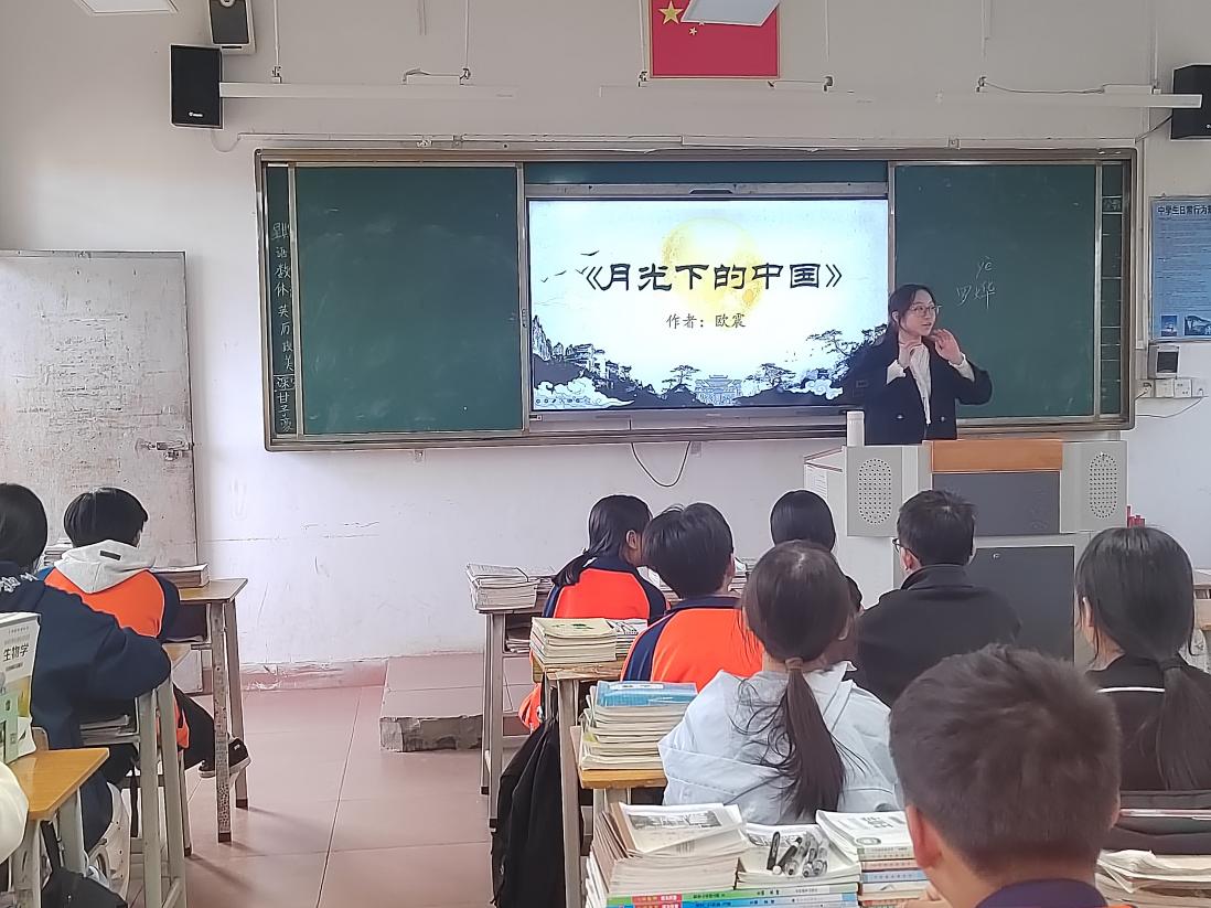 在教学过程中,团队教师详细讲解了语速控制、重音处理、停顿把握和语调变化等技巧。针对不同段落的情感特点,教师进行了现场示范:在描绘江南古镇的诗句中,语速舒缓、气息轻柔,模拟出月光洒在青石板上的静谧氛围;在展现长城与历史厚重的段落里,语调逐渐昂扬、重音清晰有力,传递出恢宏壮阔的家国情怀;而在诗歌结尾“迎接崭新黎明”的部分,则通过语气渐强、音色明亮的处理,表达出对美好未来的坚定期待。