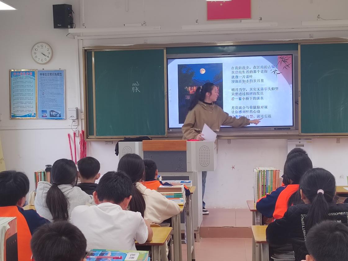 11月27日,惠州学院文学与传媒学院美育浸润团队在教授张波、副教授冯爱琳的带领下,与学院2023级语文教师卓越班的学生代表一同前往龙门路溪学校,为七年级同学带来了一堂富有感染力的朗诵课。师生团队围绕经典诗篇《月光下的中国》展开了一场声音与情感的对话。