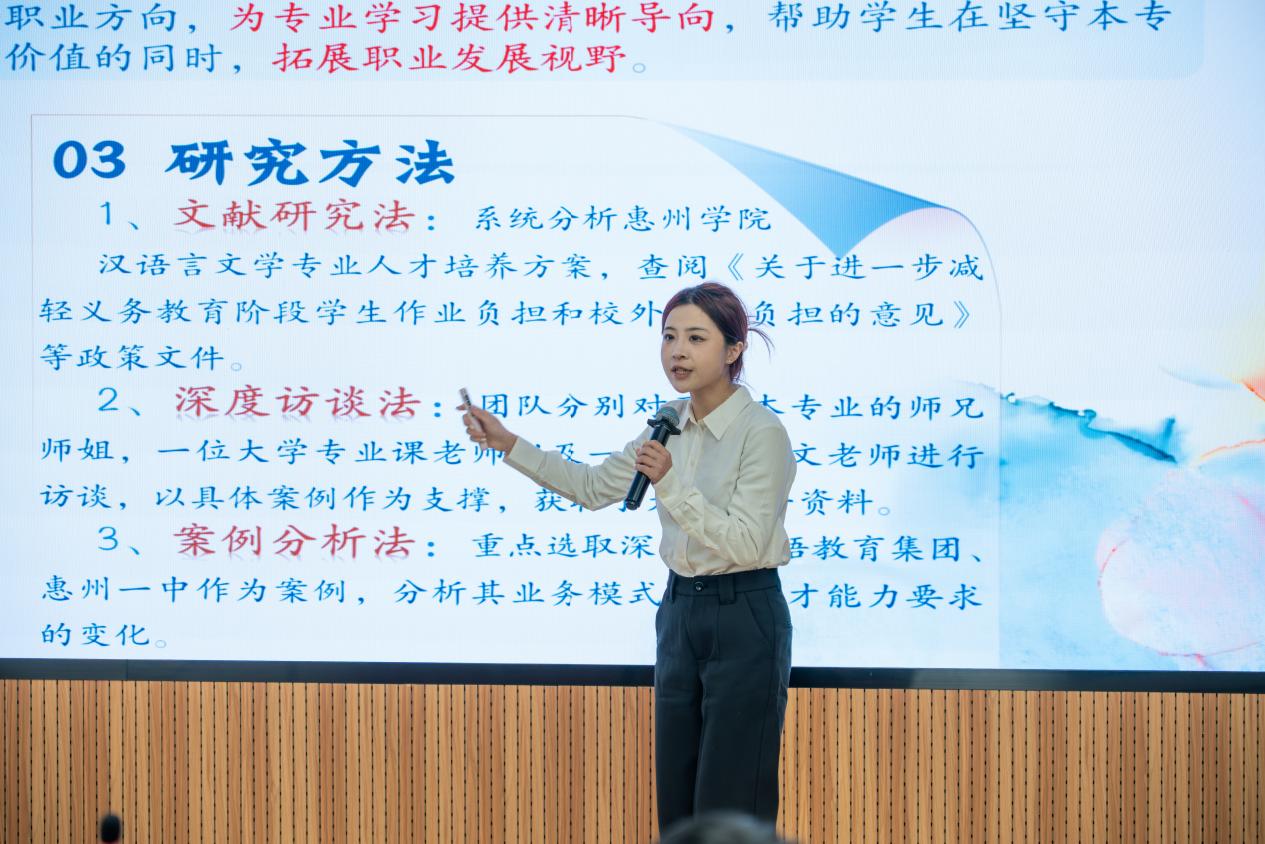 在第二届大学生职业探索大赛中,全校195支队伍同台竞技,仅15支队伍突围晋级决赛。我院“青衿师探队”作为晋级决赛的队伍之一,聚焦语文教师职业领域,深耕一线访谈求实效,对话优秀学长学姐取真经,执笔撰写近五万字探索报告。在队长李堤的带领下,陈凯纯、万欣瑜、邱小灵、冯思敏、黄芷瑶5位队员,实现跨年级协同作战,同时,学院的张雯、梁愿两位老师全力指导,助力团队挺进决赛。在11月20日晚,“青衿师探队”在校决赛的现场上,不畏强手、迎难而上,答辩流畅,最终以硬核实力斩获校级二等奖,尽显文传学子求真务实的实践品格与协同攻坚的团队精神。