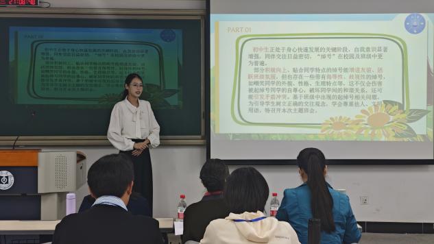 本次比赛设置主题班会课说课与情景答辩两个环节,参赛者自主选定教育家精神、家国情怀与强国使命、心理健康教育、自我认同感等方向的主题开展说课展示,全程限时7分钟。选手们结合不同学段学生的成长特点,设计出风格各异的主题班会方案,在赛场之上,他们或是娓娓道来,或是铿锵有力,充分展现出我院师范生扎实的专业基本功与昂扬向上的精神风貌。
