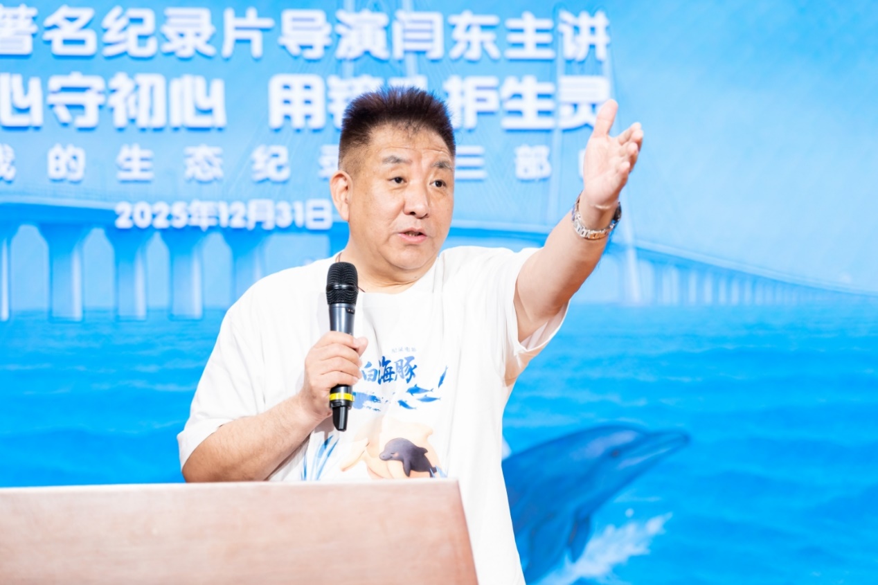 在映后分享环节,中国著名纪录片导演、中央广播电视总台社教节目中心特别节目部原主任、中国视协纪录片学术委员会副会长闫东讲述了他的创作初心与幕后历程。他透露,拍摄灵感源于2014年参与制作《港珠澳大桥》期间与白海豚的多次相遇,其灵动的身影激发了创作生态纪录片的强烈愿望。闫东导演强调,纪录片的核心生命在于“真实”,六年间团队上百次出海跟拍,亲历了白海豚的“生离死别”,这不仅是影像记录,更是一场“心与心的贴近”。他呼吁全社会共同努力,“护好这片碧海”,守护人类与海洋生物共有的家园。