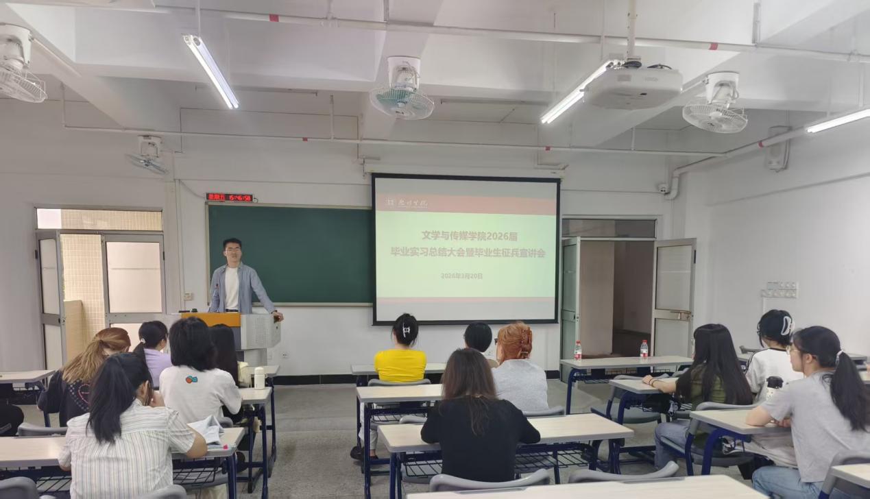 为积极响应国家征兵号召,引导青年学子投身国防建设,3月20日下午,文学与传媒学院于旭日楼402教室举办2026届毕业生征兵宣讲会。学院副院长卜凌云、李耿晖,辅导员代表,征兵宣讲团成员陈乐、谢馨怡及2026届毕业班学生代表参会,共学征兵政策,共燃参军报国热情。