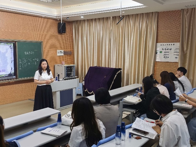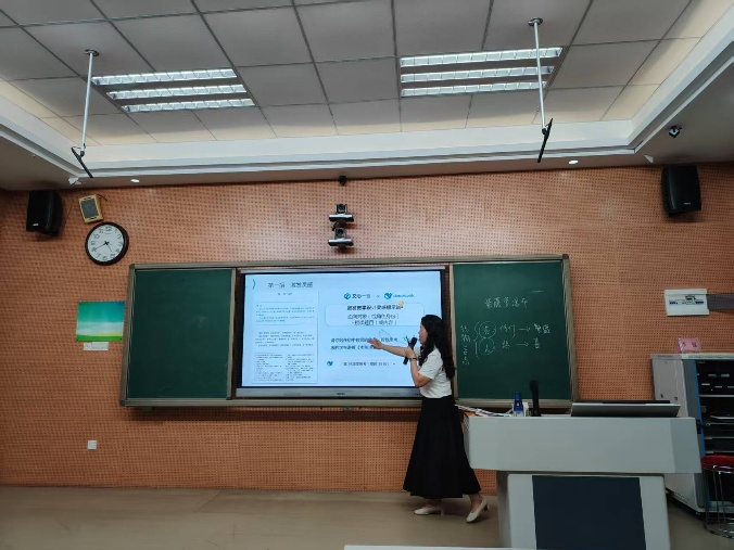 活动最后,望牛墩中学副校长刘兴娣以“现代教育技术运用赋能初中语文教学”为主题开展嵌入式教学讲座。她从教育数字化转型趋势入手,系统分享了数字化工具在备课、授课中的实践应用,并结合学校教学案例展示了信息化教学的创新路径,表达了构建协同素质教育教研生态的愿景。研究生们表示本次讲座内容详实,贴近教学实际,对现代化教育手段融入语文教学活动有了直观的感受。